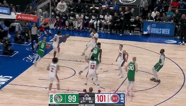 杰伦-布朗关键时刻两罚不中,托哈再中三分砍下25分领先5分